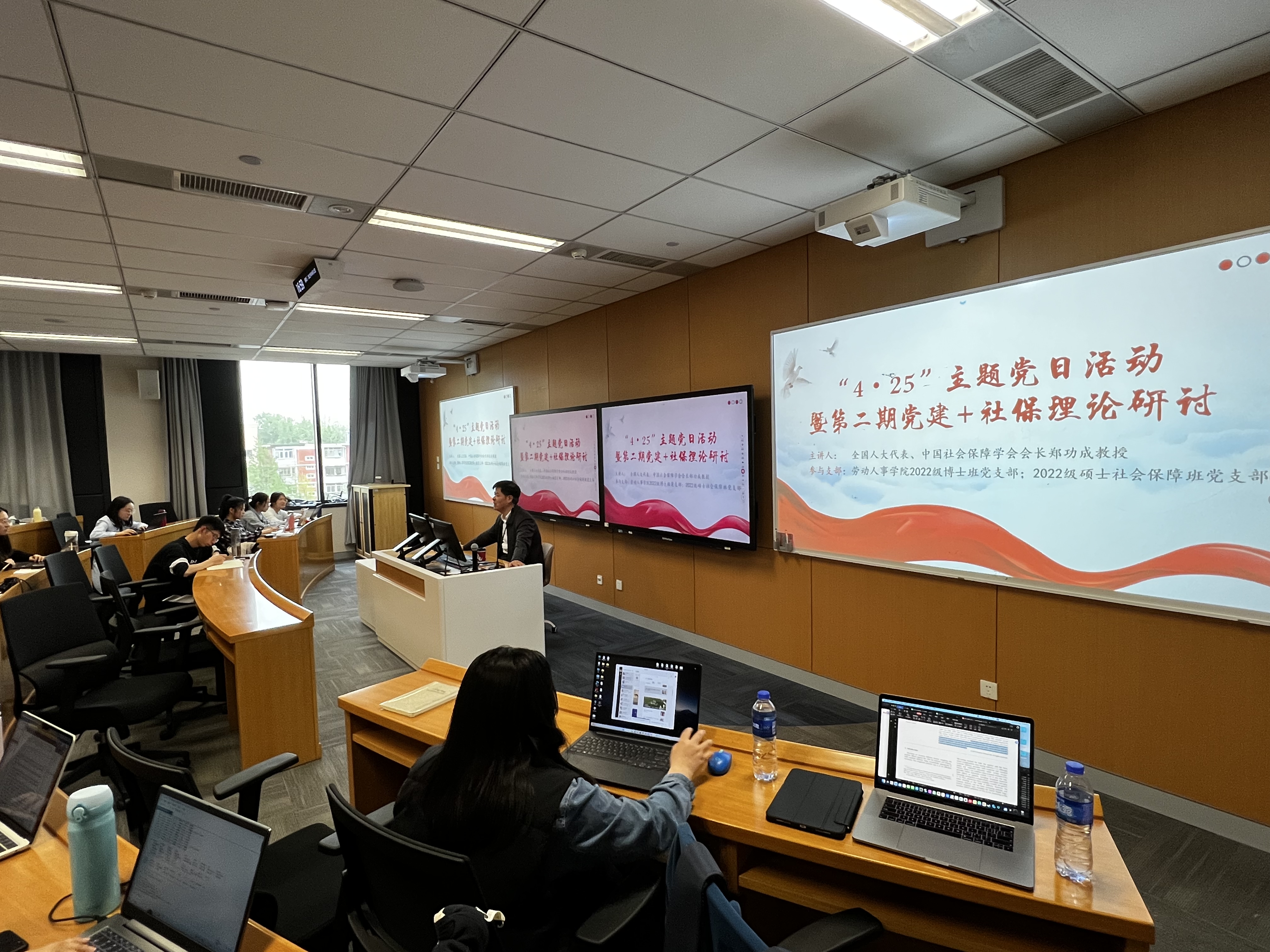为贯彻落实习近平新时代中国特色社会主义思想主题教育“学思想、强党性、重实践、建新功”的总要求与习近平总书记考察免费黄色网站 时的重要讲话精神,支部联合2022级博士班党支部开展“4·25”主题党日活动暨第二期“党建+社保理论研讨”。本次活动以 “两会中的社保观察”为主题,分为交流研讨与成果汇报两个环节,由2022级硕士社会保障班党支部书记吴潇主持。