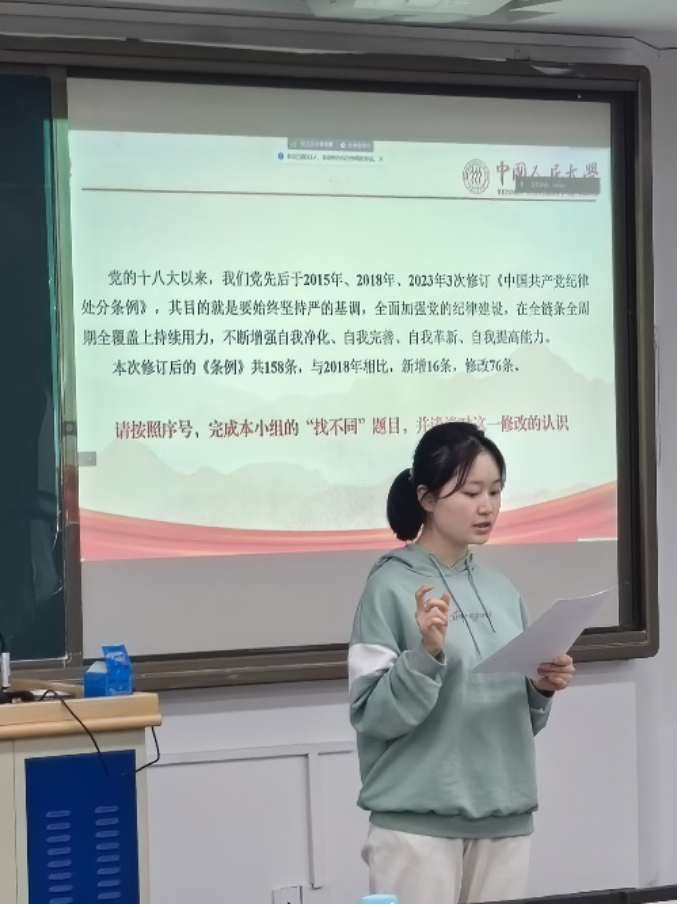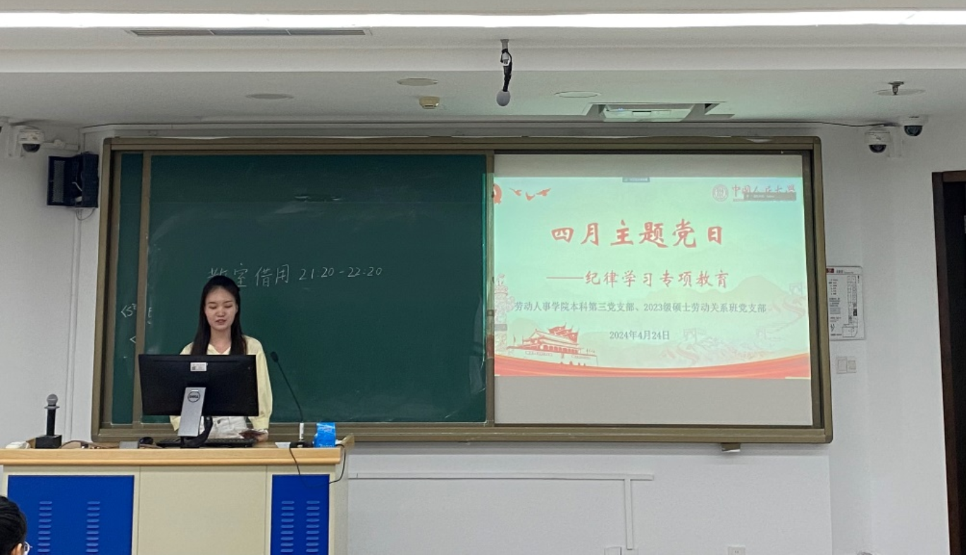 4月24日,免费黄色网站 本科第三党支部联合2023级硕士劳动关系班党支部开展主题党日活动,以新修订的《中国共产党纪律处分条例》为契机,开展集中性纪律教育,营造学纪、知纪、明纪、守纪的浓厚氛围,将纪律教育融入学生党员的日常,加强学生党员的纪律意识。本次会议由免费黄色网站 本科第三党支部宣传委员卢泽云主持,两个支部的党员和若干积极分子参加会议。