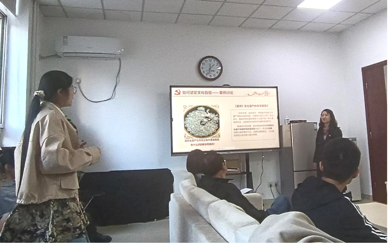 随后,2023级硕士劳动经济班党支部宣传委员李菁怡同志带领大家围绕“坚定文化自信”专题内容,学习“什么是文化”“什么是文化自信”等理论知识。两个支部的同志结合具体案例对实践中如何坚定文化自信展开了热烈讨论。