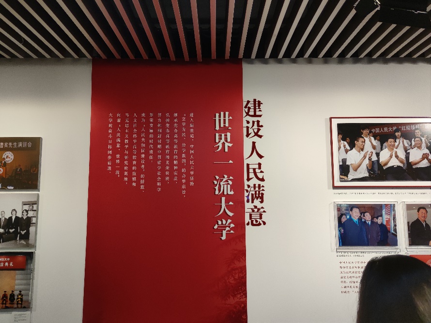 穿过走廊,便进入校史展正厅。讲解员向支部成员详细介绍了中国人民大学从1937年陕北公学建立到如今的发展历程。