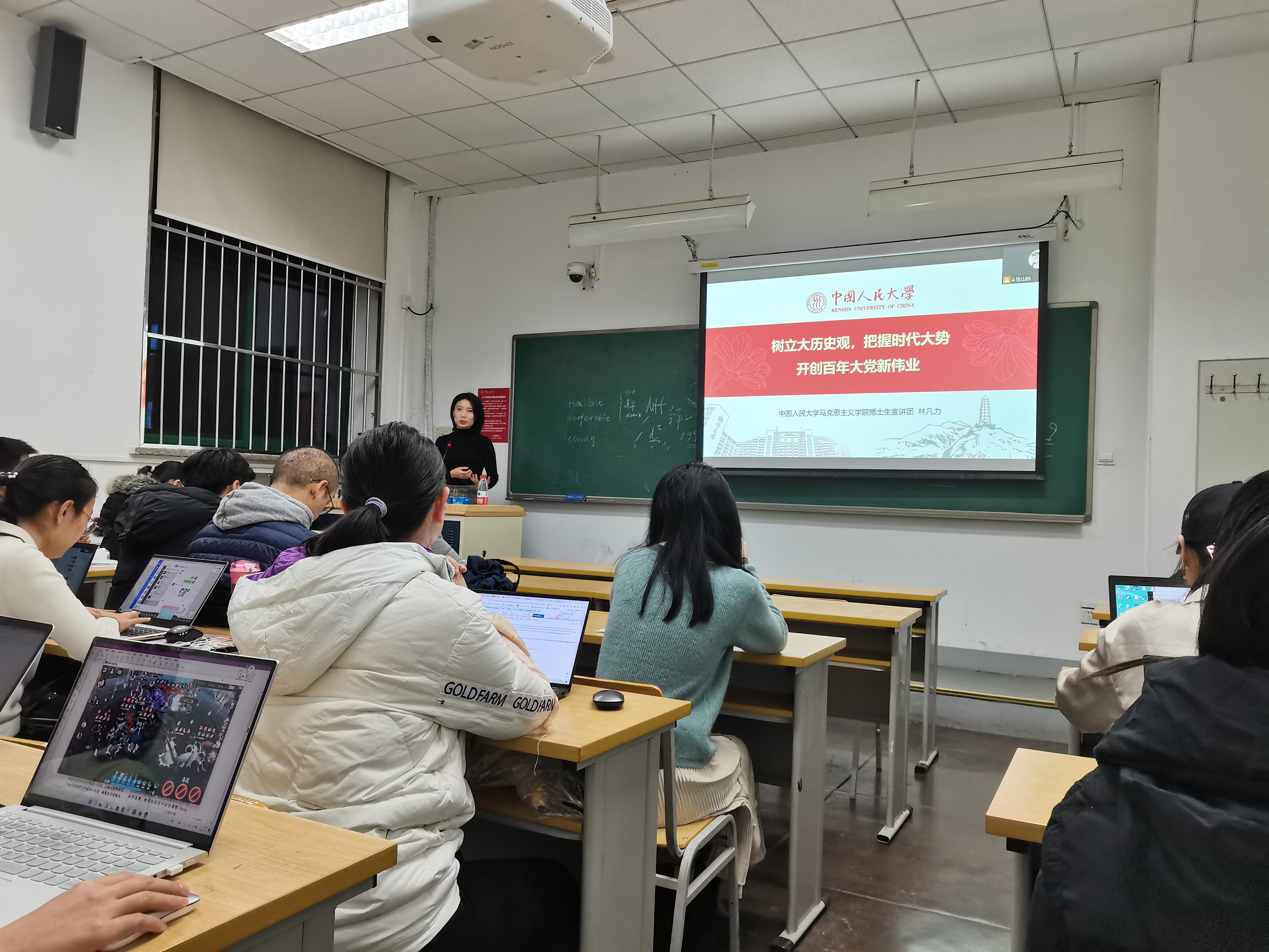 林凡力同志宣讲的主题是“树立大历史观,把握时代大势,开创百年大党新伟业”。在宣讲开始前,林凡力同志组织全体党员同志做了一个名为“一站到底”的小游戏,目的就是对党员同志关于十九届六中全会的相关知识点进行一个小测验,通过这种生动有趣的方式加深了党员通知对十九届六中全会的认识和理解。接着,林凡力同志从历史观的角度讲解中国共产党百年奋斗历程以及成功实践的经验。纵向来看,中国共产党的建立和每一次伟大实践都具有历史性的重大意义;横向来看,中国共产党百年奋斗历程证明了它是一个比其他政党更具优越性的伟大政党。党的伟大成就和特有的优越性离不开每一个中国共产党员前赴后继、顽强拼搏的精神。在新的历史关头,全体党员同志应该继续大力弘扬党的精神,为党的建设尽绵薄之力。
