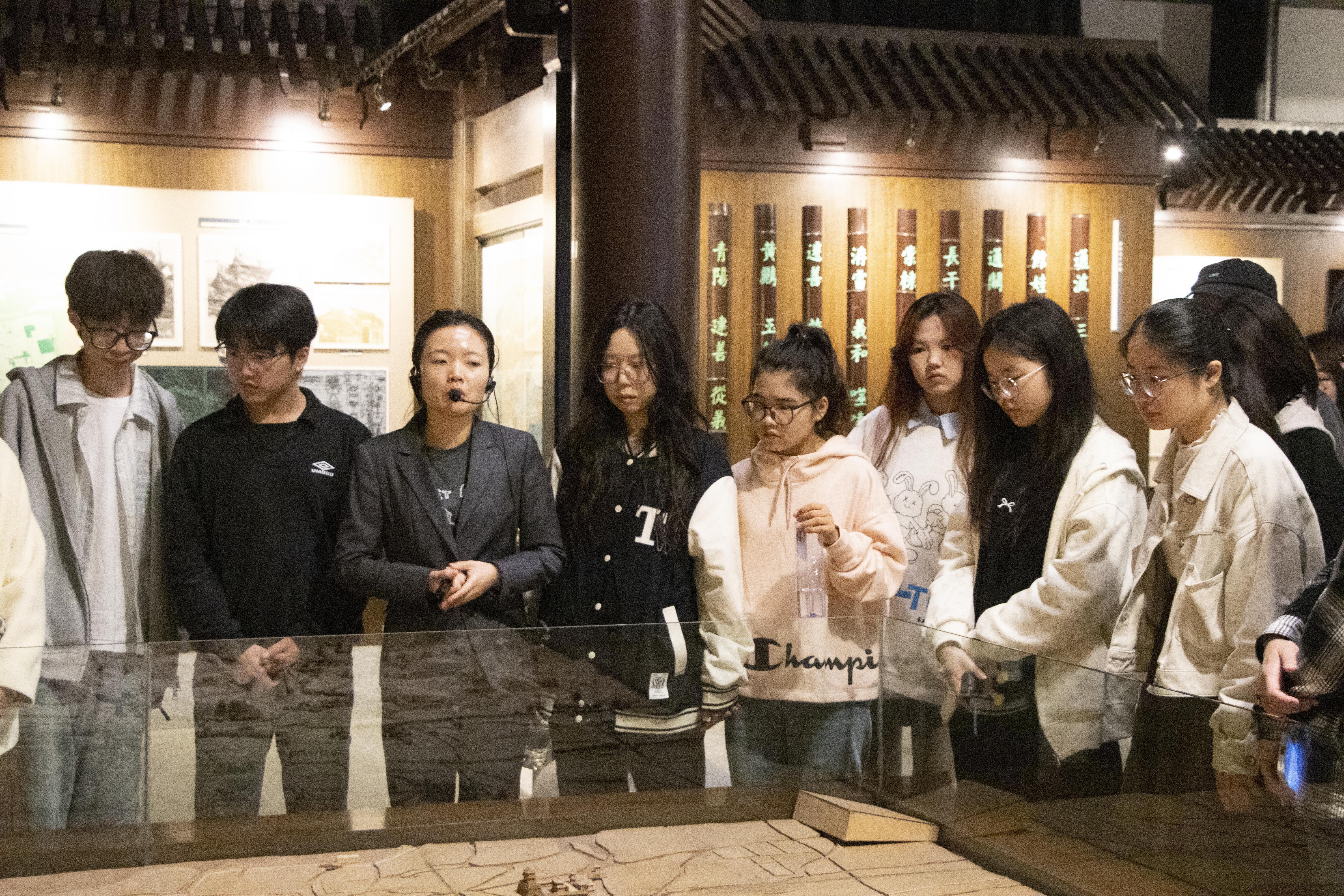 在工作人员的带领下,大家首先来到了古代展馆部分进行参观。这部分展馆包括的建城、唐宋的兴盛、明清的繁盛、城市变迁中的亮点四个部分,通过平江图、姑苏繁华图、山塘、虎丘、民居、历史文化名镇以及桥、塔、牌坊、窗、厅、阁、石、匾等体现苏州的历史变迁和东方水城的特色风貌。现代馆部分主要呈现了苏州的发展成果和未来规划。穿过非物质文化遗产走廊,师生见证了昆曲、缂丝、宋锦的传承与发展;面向“数读苏州”,从一个个数字背后看到了苏州发展的累累硕果;俯瞰苏州城市沙盘,了解到苏州的城市规划和未来战略。整场展览向在场师生全面展示了当代苏州保护古城、建设新区、开发工业园区的主要成就以及未来苏州规划建设的宏伟蓝图。