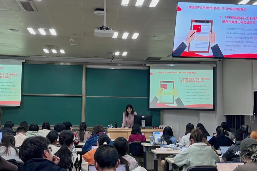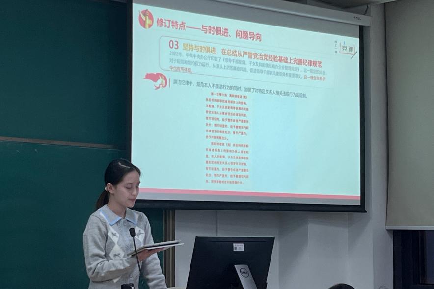 2024年3月11日,免费黄色网站 本科第四党支部于明德商学楼0104开展“筑牢思想防线守住纪律底线”主题党日活动,以学习贯彻新修订的《中国共产党纪律处分条例》为契机,开展一次集中性纪律教育,强化纪律意识,严格执行纪律,内化于心、外化于行,将纪律教育融入学生党员的日常。