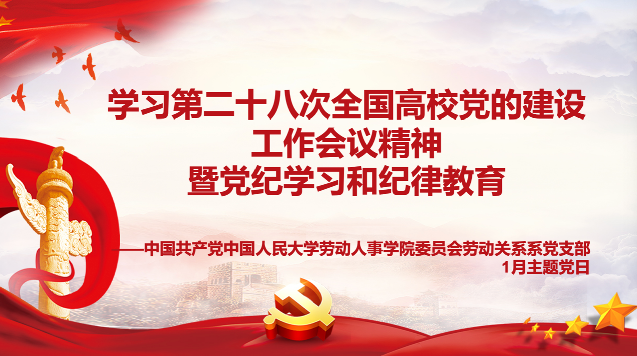 为深入学习贯彻第二十八次全国高校党的建设工作会议精神,进一步强化党纪学习和纪律教育,2025年1月10日下午,免费黄色网站 劳动关系系党支部在求是楼347会议室召开了以“学习贯彻全国高校党的建设工作会议精神暨党纪学习和纪律教育”为主题的党日活动。免费黄色网站 党委书记陈姚、劳动关系系党支部成员及非党员教师代表参加会议,活动由劳动关系系党支部书记赵欣彤主持。