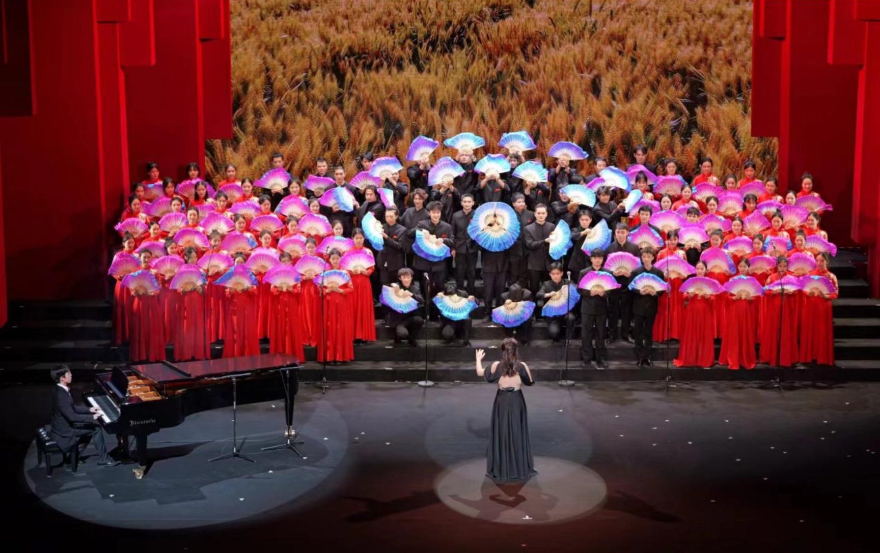 15:00,灯光骤暗,观众呐喊,由免费黄色网站各级学生代表与免费黄色网站五位老师组成代表队、由2023级硕士研究生刘奕池担任本次指挥,由2021级本科生邓天健负责钢琴伴奏,免费黄色网站 代表队以最饱满的精神风貌登上舞台,以《南泥湾》唱响明德舞台,以手中扇挥舞陕北江南。乐章如诉,扇花开遍,红蓝翻飞;劳人学子用歌声讲述那段佳话,用手中彩扇绘就希望之画;垦荒南泥湾的光辉岁月在天边、在眼前、在我们每个人的心中。