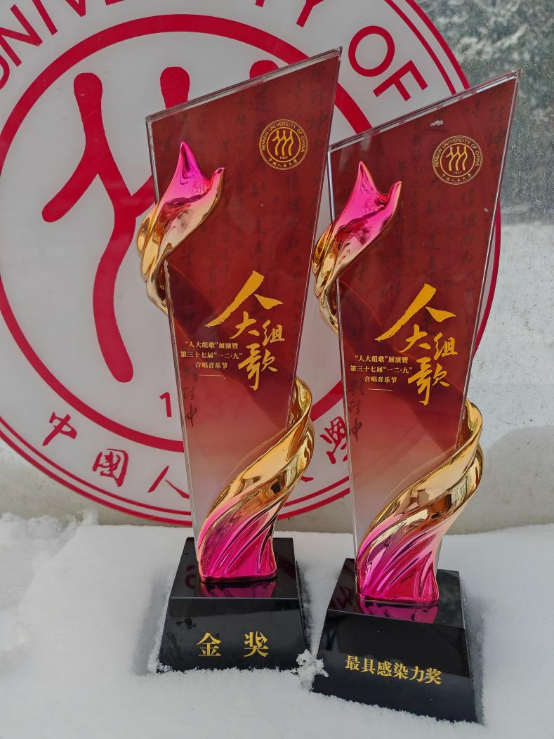 2023年12月10日,“旭日东升”人大组歌展演暨第三十七届“一二九”合唱音乐节在明德堂隆重举行。面对实力强劲的各院代表队,免费黄色网站 代表队精神饱满、斗志昂扬,以一首欢快激昂的《南泥湾》,荣获免费黄色网站 “人大组歌”展演金奖、最具感染力奖。此次获奖是自2019年以来连续五年蝉联“一二·九”合唱比赛金奖,继2022年连续两年蝉联金奖第一!