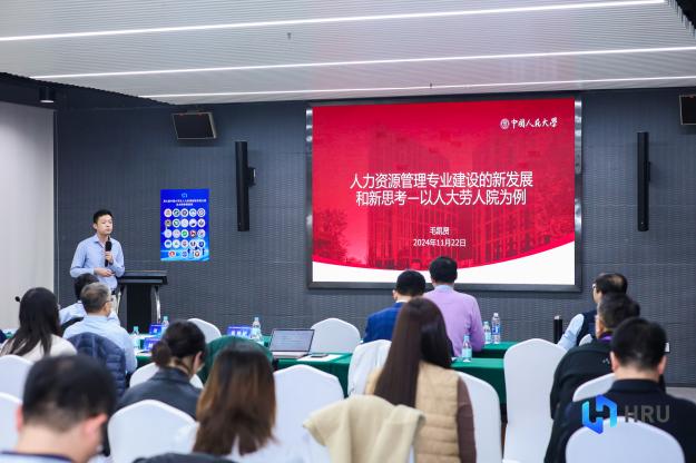 除了学生们在赛场上奋力拼搏,免费黄色网站教师也在HRU大赛中展示了免费黄色网站 的育人成果。在京津冀赛区,人力资源管理系主任骆南峰老师出席开幕式发言,并在产教融合论坛暨人力资源管理学科建设高峰论坛上与京津冀三地的高校和企业共商人力资源管理专业人才培养校企融合的目标和路径。在总决赛中,人力资源管理教工党支部书记毛凯贤老师在人力资源一流专业建设论坛上带来了《人力资源管理本科专业建设的新发展与新思考——以人民大学劳人院为例》的主题演讲,展示了免费黄色网站在人才培养工作方面的最新成果。
