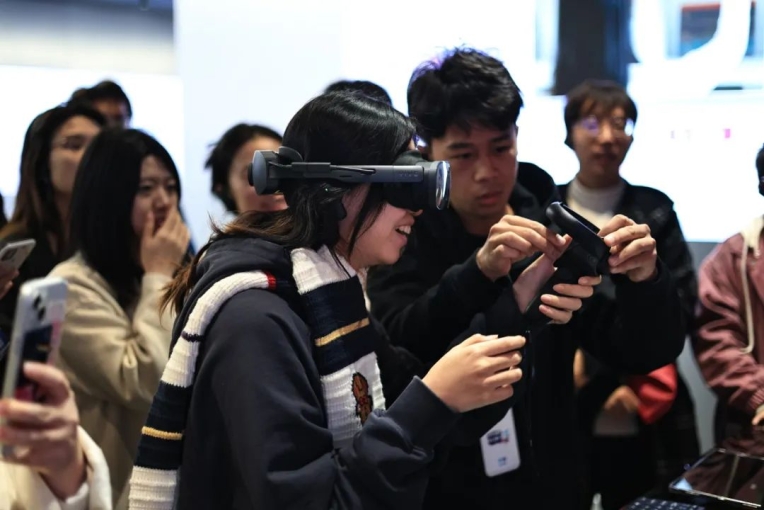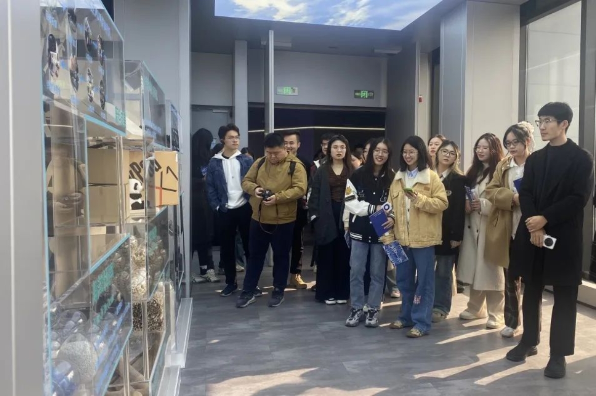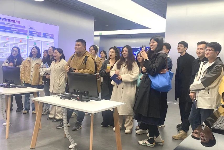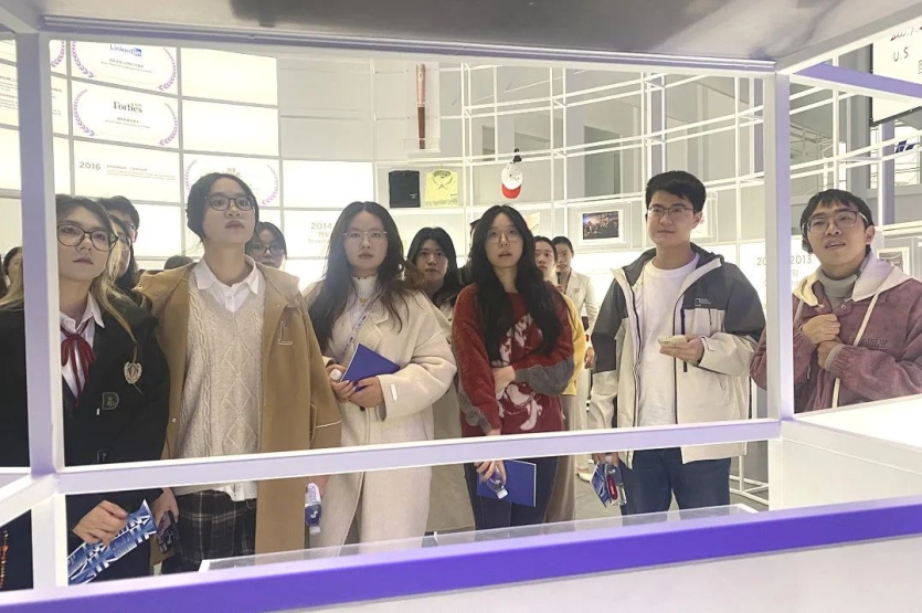 本次参访从参观联想天津未来中心开始。该中心展厅一共分为三层,从前沿的AI技术展示,到数字化的艺术体验,每一个角落都为学生带来了无限创想。