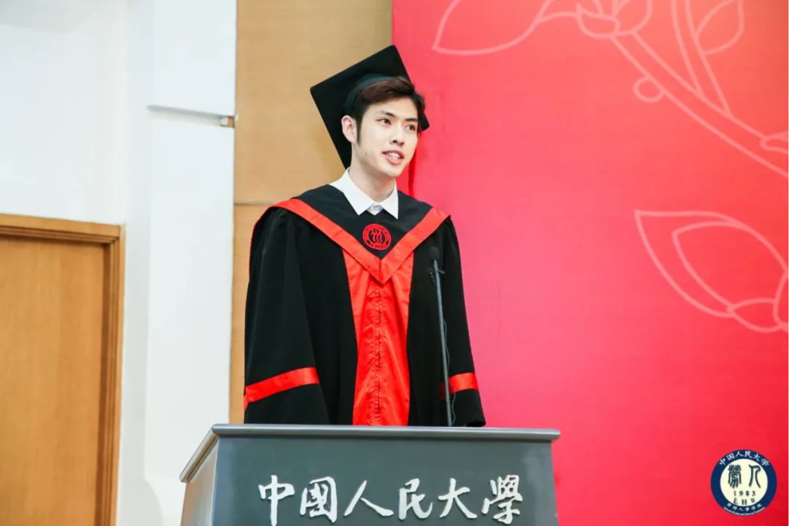 博士毕业生代表祝慧琳回忆在劳人院学习到了知识,遇到了良师,让自己获得精神慰藉,也变得更加博学睿智。“爱在劳人”不只是口号,而是避风港,给予我们力量。她表示,人生是不断成长的过程,要相信自己,找到热爱,坚持自主。最后,她祝愿所有毕业生鹏程似锦,顺遂如意。