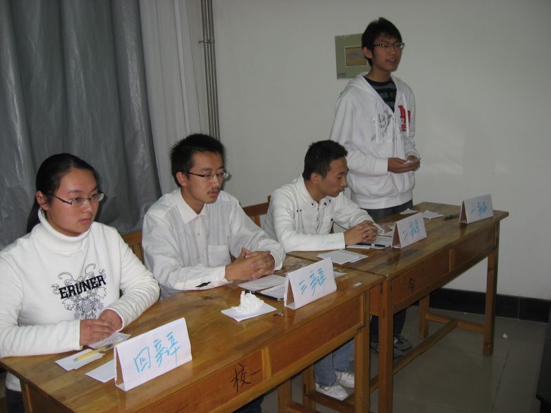 辩论队和心翔演讲协会联合举办的2008级班级辩论联赛初赛第一第二轮比赛10月26日下午在明水校区1102和1104教室举行。