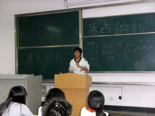 此前“走进质点”的讲座得到了大一新生的积极响应,同学们都踊跃报名,经过本部和明水校区各部负责人及成员精心准备,细致策划,纳新工作分两个教室有条不紊的进行。纳新分为自我介绍和现场提问两个环节。记者团、编辑部、网络部和秘书处对有意加入各部的学生有针对性的进行了现场考核。