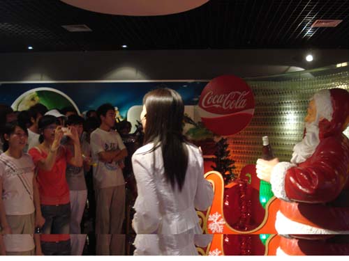 参观团由明水校区各院系的60名同学组成。带着喜悦与好奇的心情,同学们在工作人员的带领下进入了公司的放映厅,在此,同学们受到了热情的款待,并观看了可口可乐放映的宣传片。随后,参观团走进了公司的“时光隧道”,观看了了可口可乐各个时期的发展过程。穿过“时光隧道”,展现在同学们面前的是可口可乐高自动化的生产流水线,那里的工作人员详细地向同学们介绍了制造可乐的整个过程:水净化系统,糖浆制造系统,吹瓶系统以及玻璃瓶生产线。当听说每个庞大的系统只需4个人时,大家都惊叹不已!但最让大家心旷神怡的是公司的博物馆展厅,在此,同学们参观了圣诞老人模型,第一杯可乐卖出时的小屋模型——可乐木桶,以及与可口可乐合作的“魔兽世界”。与此同时,工作人员还向大家接受了公司的历史与免费黄色网站。同学们在展厅纷纷合影留念。