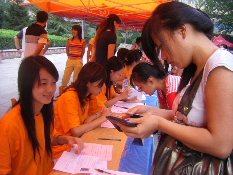 上午8点左右,新生开始陆续报到。报到程序简洁明了,注册人员工作细致认真,热情地为新生办理入学手续。为方便家长休息,细心的工作人员还专门设置了家长休息处,配有板凳和饮水机,供家长们休息;负责搬运行李的工作人员不顾酸疼的手臂,一次又一次帮助新生将行李搬进宿舍;服务人员耐心地回答新生及家长关于入学后学习、生活各方面的问题。