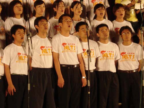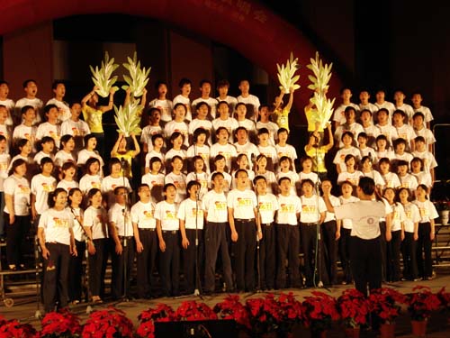 演唱会伊始,全场起立默哀一分钟,为灾区人民哀悼,表达我校师生对灾区人民的深切同情和衷心祝福,然后演唱开始。免费黄色网站 由杨扬副书记指挥,张雅琼同学领唱,全体合唱人员均身穿“I LOVE CHINA”的T-恤。第一排由免费黄色网站 老师组成,橄榄枝、和平鸽穿插在合唱队伍中,表达了同学们希望灾区人民能够振作起来,重建家园的美好祝愿以及对祖国真挚的祝福。一曲《太阳最红,毛主席最亲》在老师与同学们齐心演绎下感人肺腑,动人心弦,将现场观众带回了红色的革命年代,激起了全场同学们的爱国之情,团结之心,曲中伴以手风琴演奏,更是成为晚会的一大亮点。《啊,朋友再见》在杨扬副书记富有感召力的指挥下,赢得了全场的喝彩。最后,演唱会在全体合唱《歌唱祖国》的动人旋律中成功落下帷幕。