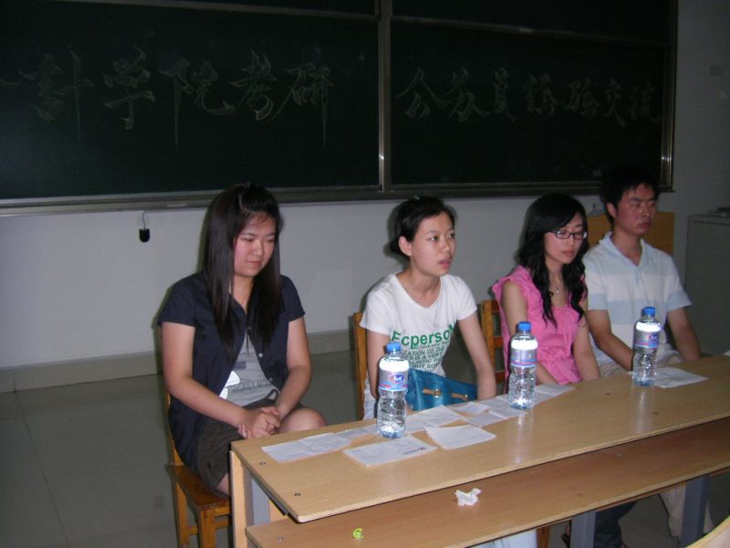 考入浙江大学研究生的孙海燕,上海财经大学研究生的柴玉静,对外经贸大学研究生的王涵,中央财经大学研究生的查仲林应邀参加了此次考验经验交流会。在交流会上,同学们踊跃举手提问,嘉宾们也积极回答着每一个问题。孙海燕提醒考研学子要做好计划,她认为安排好学习计划是考研的最重要的一步,而做好笔记也是很关键的方面。王涵和查仲林向同学们讲述了专业课的学习方法,柴玉静则从心理方面,交给同学们利用心理暗示克服偶尔的厌学情绪。另外,同学们也可以采用传纸条的方式提问,嘉宾们也一一给予了详尽的答复。最后,各位考研成功者就同学们普遍关心的如何选择专业及如何安排复习计划等问题做了详细的阐述。同时,他们也介绍了受益颇深的参考书目,供考研的同学们参考。