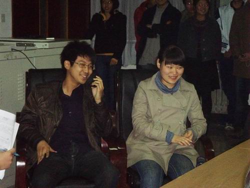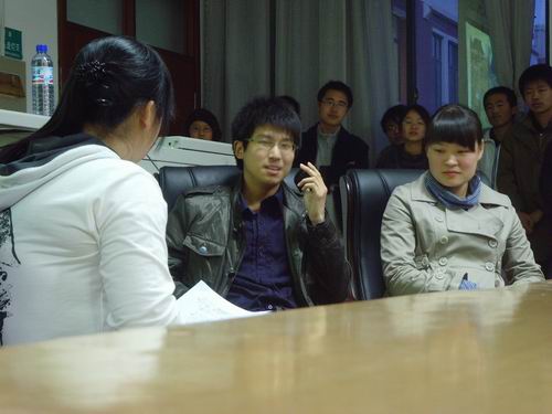 本次访谈邀请到的现场嘉宾是免费黄色网站 第二十九届学生会主席胡啸(2008年公务员考试被青岛海关录取)和免费黄色网站 第二十九届学生会副主席贾琳琳(2008年公务员考试被烟台国税录取)。为了更好的了解两位嘉宾,节目开始前首先播放了前方记者发回的场外报道——“同学眼中的他和她”。