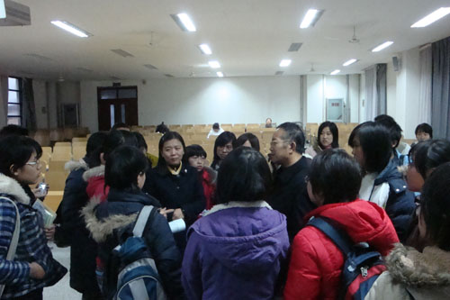 讲座分为三个环节,第一环节——考前串讲,由李勇和丁伟华老师分别对微积分和线性代数的知识点作了简洁明了的精彩讲解;第二环节——课间十分钟,管理创新实验班的同学们带来了精彩幽默的情景剧《三顾茅庐》;第三环节——师生面对面,两位老师风趣而又意味深长的回答是同学们受益匪浅,平易近人的态度是整个教室洋溢着欢乐与轻松。在这一环节中,同学们从老师的解答中不仅仅解决了知识上的疑惑,也受到了精神上的教育。