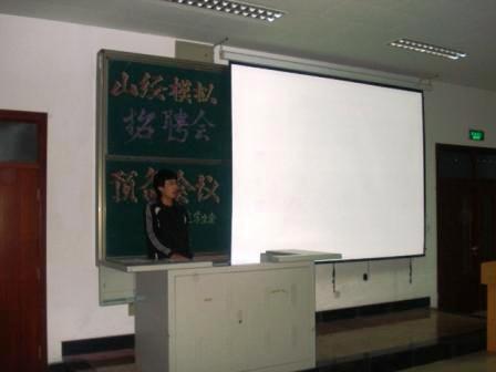首先,主持人介绍了本次模拟招聘会的流程,然后开始了个人简历的讲解,由同学绘声绘色地介绍了简历的四步制作流程,并穿插实例,使抽象的过程更加具体化。同学们一边认真听,一边记笔记。随后,主持人还播放了联想公司的招聘视频,让同学们感受以下真实招聘会的气氛。