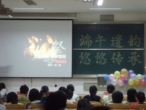 生活部举行的“端午遗韵,悠悠传承”活动在3217教室圆满举行。活动一开始,由主持人请上并介绍了缝制香囊的同学,当她们在缝制的时候,由云水涧民舞协会的同学献上了优雅的民族舞。随后播放了一段关于端午节的视频,主要介绍了端午的起源、风俗以及影响。之后,根据视频内容进行了提问,同学们的回答也很积极,并且每位回答问题的同学均获得了粽子。在问答环节之后,由民乐协会的同学带来了琵琶独奏。听完动听的琵琶曲之后,一些在5月过生日的同学欢聚一堂,在前面摆放了生日蛋糕,一起庆祝生日并送上来祝福。庆祝生日后,相关人员向大家展示了刚刚缝制好的香囊。最后,本活动在一曲《屋顶》中结束。活动虽短,但我们大家一起迎接端午节是很有意义的。