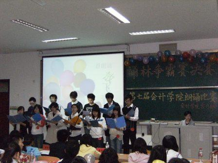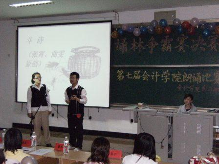 当晚活动精彩纷呈,紧凑有序,获得了同学们热烈的好评。最终的比赛结果为:于大纬、张霄、李泽同学获得了二等奖,来自国际教育学院的张钊同学获得了一等奖,最终笑傲诵林,加冕盟主。