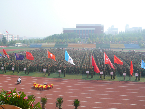 金秋送爽,丹桂飘香,在这果实累累的季节里,经过前期的精心准备, 2009年 9月 25日上午,山东经济学院2009级新生开学典礼在明水校区田径场隆重举行。此次大会由山东经济学院副院长崔有平教授主持,党委书记张体勤教授,院长郝书辰教授,人民武装学院校长许志强大校,山东经济学院党委副书记刘清乐教授、牟思伦教授,以及山东经济学院各学院领导、老师、教师、学生代表及 2009级全体新生参加了大会。