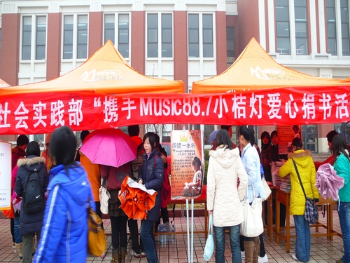 社会实践部与济南电台Music88.7携手举办的“小桔灯爱心捐书活动”在明水校区学生餐厅门口正式开始。本次活动主题为——“点亮小桔灯,让城市和乡村的孩子同读一本书”,活动主办方希望通过这次面向全校的爱心捐书活动,唤起同学们的爱心,帮助贫困地区的儿童实现读书的愿望。
