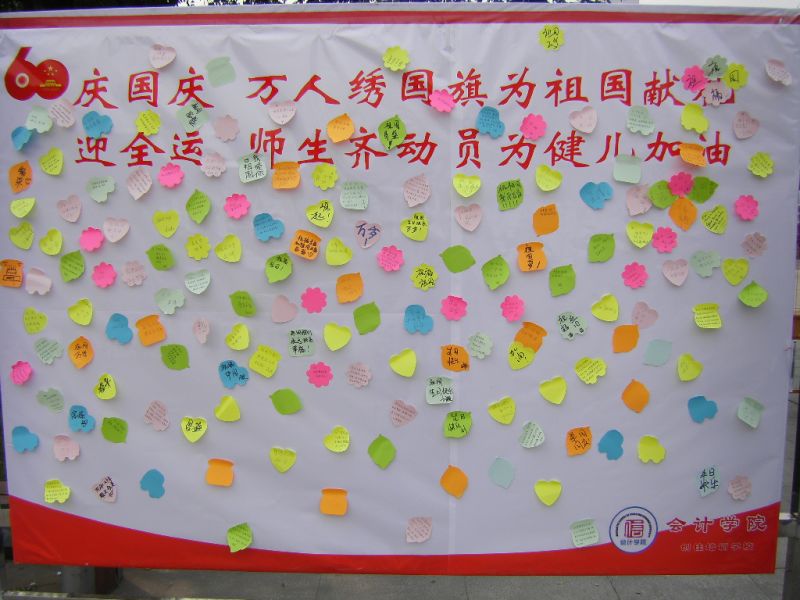 祝福祖国的话语贴满展板