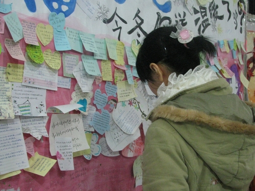 展板上,密布着送给给老师的“谢谢您的教诲”,送给父母的“身体健康”,送给远方同学的“很想你”以及送给舍友的“我们要一起幸福快乐的长大”等对朋友、家人、恋人深深的祝福,像漫天的星星,点缀着冬季的严寒却散发出温暖的气息。那一张张五彩斑斓的祝福纸条在空中摇曳,随风飘散出浓浓的爱意,汇成同学们的深深祝福,成为这个冬天最温暖的问候。此次活动更加增进了同学们彼此之间的感情,强有力的推动了构建和谐校园的进程。