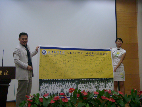 活动开始,一段80年代的音乐仿佛把在场的校友们重新带回了20年前的峥嵘岁月,随后一部反映山经二十年大发展的专题片又把所有人带回到了如今的辉煌时代,让大家为学校和免费黄色网站 这些年来的高速和跨越式发展感叹不已。胡元木教授首先致欢迎辞,山东经济学院前任院长任辉教授,教师代表谢承基教授也分别致辞,忆往昔、看今朝,共同表达了学校对老校友们的热情欢迎。学生代表汤永毅和盛希泰也上台发言,讲述了他们眼中山经的变化,并对学校建设提出自己的建议和期望。