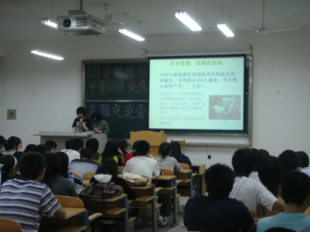 资产评估0801班与0802班在明水校区1304教室率先举行了主题为“预防甲型H1N1流感”的主题班会。