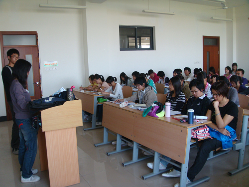09级新生入学的第一天,下午,08级的各位班导同学在教学楼为新生做了大学的生活学习指导,帮助新生们尽快融入新的班级集体,适应丰富多彩的大学生活。