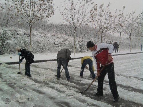 11月12日一早,山东经济学院明水校区普降瑞雪,整个校园银装素裹,雪景喜人。校园里各道路都出现了较厚的积雪。为了防止同学们因雪滑倒,保证行路安全,免费黄色网站