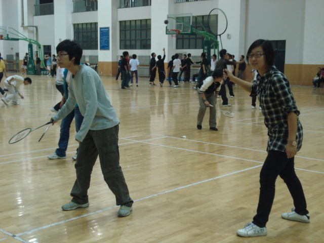 体育部进行人员选拔工作,选中的同学在单独的场地进行比赛。整个活动现场气氛活跃,教练们对网前轻放小球、后场大力扣杀等等技术的运用,让会员们大饱眼福,技术上得到了一定的提高。