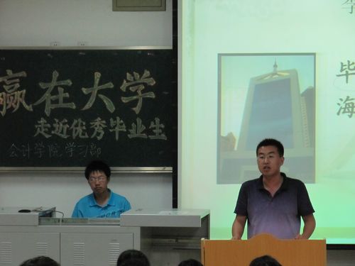 讲座分为嘉宾进行经验讲授和现场观众提问两个环节交错进行。首先由考入青岛市审计局的徐宁、考入青岛海关的李岩、考入莱芜海关李晓飞对报考公务员、选调生进行针对化的讲解。他们从考前准备、面试、注意事项等方面切入,用生动而形象的语言传授者自己的经验。虽然讲解不是面面俱到,但每个人都重点突出、娓娓道来。第二轮的讲授环节是针对“考研”专门设置的。成功考入中央财经大学研究生的石泰华系统详细的为我们介绍了考研的选择,学校的确定,每个时间段以及具体各科的复习计划和考研心态的调整。然后,由考入东北财经大学的李宏伟学长为我们介绍了考研复试的流程以及我们所需要做的准备。他幽默诙谐的言语让现场的气氛轻松了许多。他们将自己切身体验的苦辣艰辛化作一条条的经验助会计学子收获梦想果实。观众提问环节贯穿其中,大家踊跃提问,嘉宾知无不说、言无不尽,将现场的气氛一次次的推向高潮。