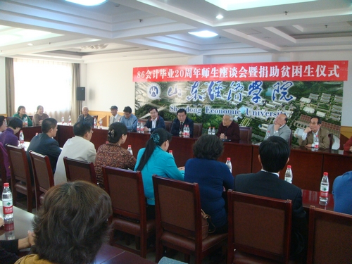 八六级校友毕业20周年师生座谈会暨捐助贫困生仪式在学校办公楼七楼会议室举行。原山东经济学院院长任辉教授,免费黄色网站