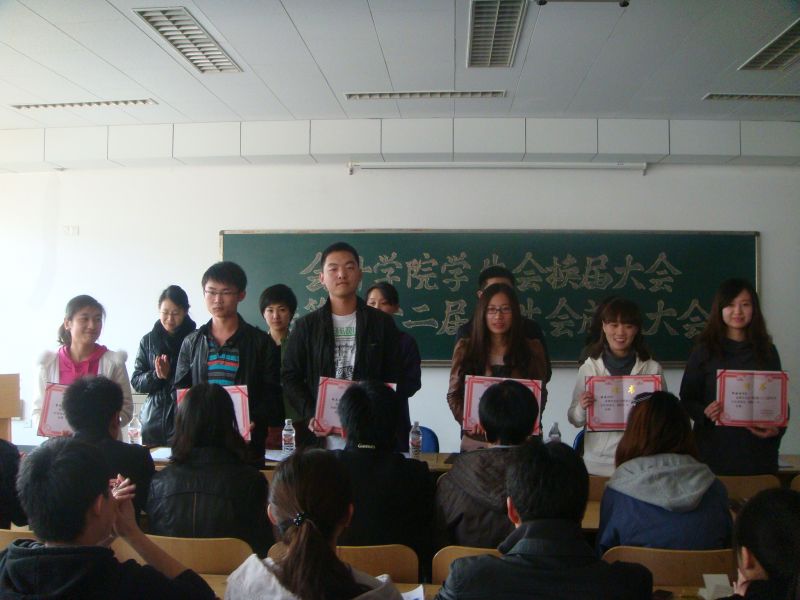 大会第四项,由第三十一届学生会主席张裕发表离职演讲。“深鞠躬表谢意,诚言语说留念。”张裕同学以自己工作的切身体会和饱含感念之情的语言,向在座的老师和同学们们传递了浓浓的感激和不舍,并鼓励学弟学妹们能勤奋学习、努力工作。新当选的学生会主席刘屹同学紧接着发表了激情洋溢的就职演讲,他提出了2011年学生会的工作设想,从自身建设、内部协调和外部沟通等方面表达了工作的决心和信心,并针对老师们指出的不足提出了下一步的改进方案。