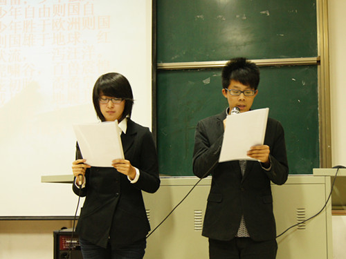 本次开幕式分为三个环节:集体宣誓、作品展示、现场互动。首先,主持人带领现场全体同学以梁启超先生的《少年中国说》为誓词进行宣誓。慷慨激昂的誓言,不仅提醒新一代青年要有高昂的斗志,而且要勇于承接其所应担负的社会责任。随后,屏幕上唯美的“三行情书”和“微型小说”伴随着悠扬的旋律,将在场同学拉入文字的海洋。继而,主办方播放了精彩电影片段,并据此展开知识竞答与现场同学互动,将开幕式推向高潮。