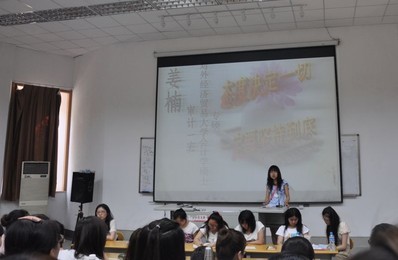 本次交流会邀请到王婷、肖潇、杨金、刘盼、张瑜、陈思、姜楠7位08级考研中的佼佼者担任嘉宾,与同学们进行近距离的交流和指导。交流会上,嘉宾介绍的重点在于备考过程中在学习方法、时间安排、心态调整方面的心得体会。考取中央财经大学研究生的王婷为同学们详细介绍了自己备考过程中的切身经历,并细致传授了自己在数学、英语、政治复习方法上的经验;考入北京国家免费黄色网站 专硕的肖潇特别为同学们介绍了专硕与普硕的差别,提醒同学们根据自身情况正确选择,另外强调了择校的重要性,告诫同学们要有自己的主观判断,不要人云亦云;考取本校研究生的刘盼结合自身特点着重介绍了考研过程中保持良好心态的重要性,提醒同学们不要在琐碎的事情上浪费过多时间与经历,保持简单平静的心态。