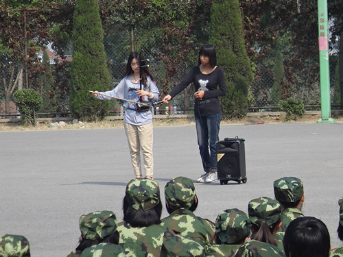 随后,免费黄色网站 文艺部、女生部联合免费黄色网站 飞天艺术团举办了一场近三十分钟的下连队慰问演出活动。演出开始,景安戈和谭然同学合唱的一首旋律激昂的《三天三夜》将训练疲惫的新生的热情点燃。一曲《和你一样》,在师安格和张娜同学的深情演绎下,让大一新生感受到全力以赴追逐梦想的力量。随后,冯悦同学用二胡演奏的《rolling in the deep》新颖独特,赢得现场阵阵掌声;汪琳蕊同学一支桑巴舞动感十足,更是掀起全场高潮。最后,在新生的热情推荐下,一营七连董连长为大家献上一首《最珍贵的角落》,歌声间洋溢着新生与教官之间的浓浓情谊。尽管场地、时间有限,但他们精彩的表演依然受到了新生和教官的广泛欢迎,极大地丰富了军训生活。