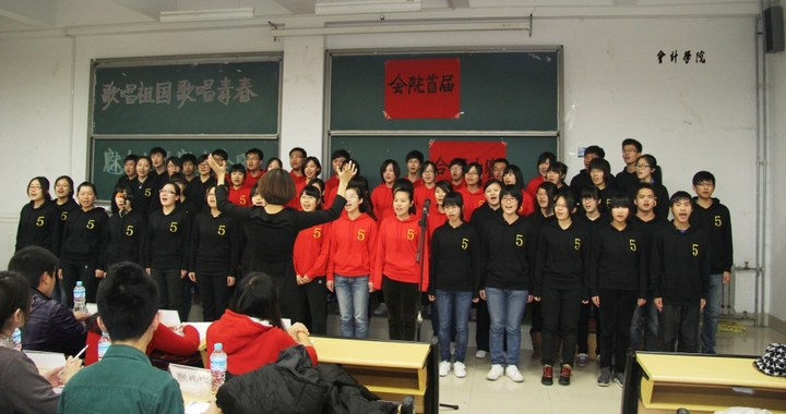 团总支主办,圣井校区学生会文艺部承办的“歌唱祖国、歌唱青春”首届主题合唱大赛在B1110教室拉开帷幕。以班为单位,每班选1-3首歌曲,11级共9个班同学全体积极参与,共同展现了一场声与美的盛宴。