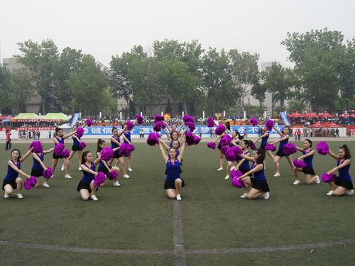 啦啦队的姑娘们用飞扬的流苏、青春的激情和灵动的舞步形成运动会赛场上一道阳光亮丽的风景线。