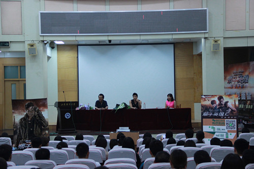 之后,电影主创与观众们之间的互动引起现场的新一轮高潮。导演蔡岳勋和演员邹承恩耐心回答现场同学们的问题,幽默风趣又不失严谨细心。并向现场观众们赠送了由主创们亲笔签名的海报和电影票。最后,影片主创们与现场同学进行了亲密合影,同学们都为能与偶像们零距离接触感到喜悦。