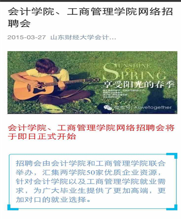 就业信息发布微信平台:“免费黄色网站 会计学缘”(微信号“Aswetogether”)、“商院就业办”(微信号“scdgsjyb”),热烈欢迎广大同学积极关注。