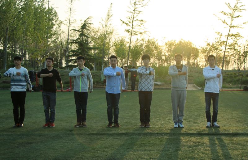 经过了第一轮选拔并不意味着能够在队伍中走到最后,后面的角逐依然激烈。方队人员训练时间为上午七点到八点,下午五点到六点半。训练的内容分成三部分:原地踏步走、齐步走和正步走。内容看似简单,但他们却为此付出了极大努力。伴着训练员一声声响亮的口号——“一令一动,一,二”“一令三动,一”——他们千百遍的重复着摆臂、踢腿等动作,枯燥乏味的练习往往会持续很长时间,但即使训练地浑身酸痛,方队人员仍然严肃认真一丝不苟。四月的阳光温和但耀眼,仔细瞧去,方队人员的面庞上都留下细密的汗珠。 最终在所有训练成员中会选出一名举牌人员、一名举旗人员、两名护旗手及男女各二十四名方队主体成员。选拔标准十分严格:除了基本动作标准规范,团队整体的协调配合也十分重要。根据这两条标准,方队训练员不定期筛选人员。所有人的内心都仿佛绷着一根弦,训练时更是不敢马虎。随着运动会一天天临近,训练要求逐渐提高,被筛选下去的人也越来越多。一位不幸被淘汰的同学表示,虽然被淘汰十分遗憾,但还是很享受方队训练的过程,这既磨砺了自己的意志,又结交了许多好朋友,给自己留下了一段难忘的大学回忆。