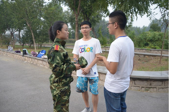 新生笔挺的站姿总让人精神一振,眼前一亮。活跃的军装下,不仅有我们的新同学,也有我们的首长和领导。他们视察工作,走近同学,亲自用自己的劳动来保证军训的顺利实施,同时检测军训的质量。我们为首长的亲力亲为点赞,为领导们走进新生训练场喝彩。你们的到来,是对我们最大的肯定。