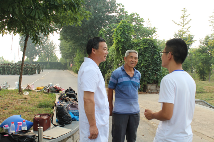 为了预防紧急情况,保证新生的身体健康,辛勤的医务工作者们总要在一旁时刻伴随新生们。炎炎烈日的考验,他们没有怨言,一袭白衣,是高尚的使命和记号。你若问他苦不苦,他答,不苦,落实工作最美妙。