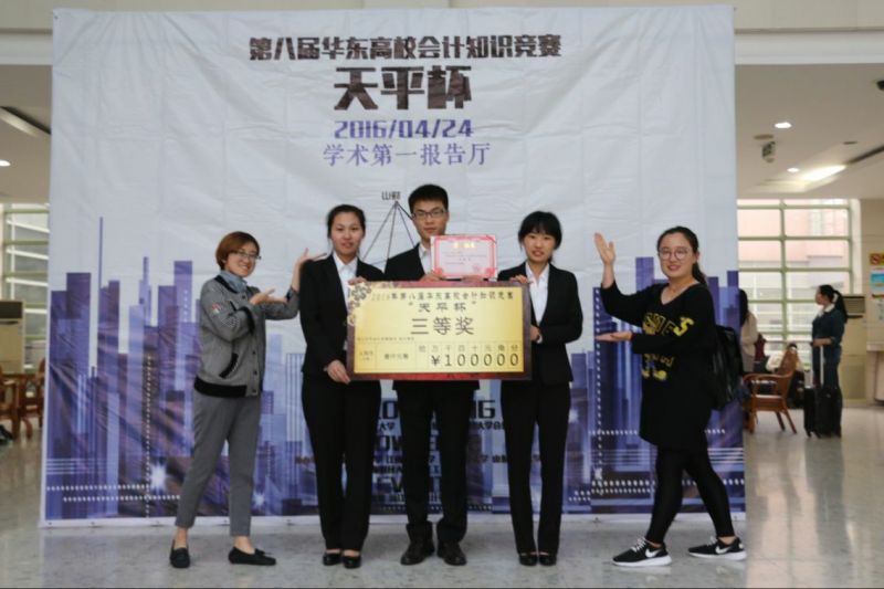 4月23日,在免费黄色网站 学研部的带领下,在本次“天平杯”华东高校会计知识竞赛山财站初赛中脱颖而出的三名同学代表我校奔赴杭州,参加在浙江财经大学举办的决赛。4月24日下午1点整比赛准时开始,我校学生在现场答题过程中反应迅速,灵活又不失沉稳,不断赢得现场观众的称赞掌声。他们运用丰富的会计知识过关斩将,经过“先睹为会、会心满志、会人会语、精打细算”,“融会贯通”和“绝地出计”三个环节的层层角逐,在七所高校中脱颖而出,荣获三等奖,并获得奖金1000元。
