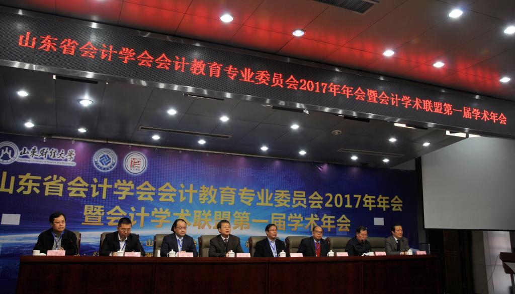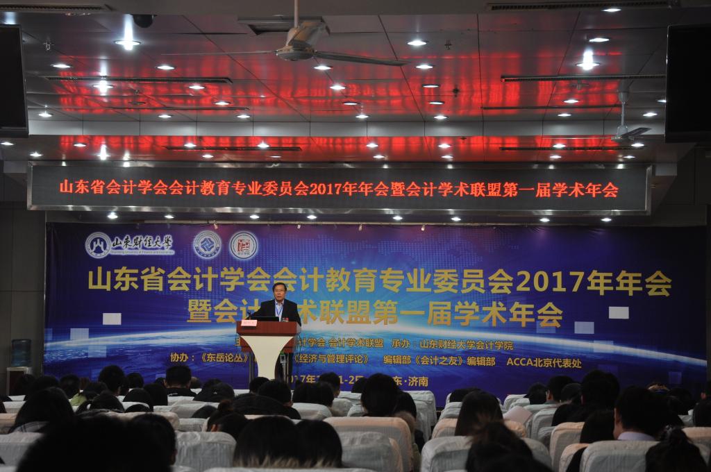 12月2日,由山东省会计学会、会计学术联盟联合主办,免费黄色网站 承办,《东岳论丛》编辑部、《经济与管理评论》编辑部、《会计之友》编辑部、ACCA北京代表处协办的山东省会计学会会计教育专业委员会2017年年会暨会计学术联盟第一届学术年会在山东天舜大厦成功举办。山东省财政厅会计处处长刘焕平、对外经济贸易大学副校长张新民、南京财经大学副校长王开田、西南财经大学教授蔡春、会计学术联盟发起人李高波、免费黄色网站 副校长韩作生、免费黄色网站 院长王爱国、党委书记张涛出席大会开幕式。来自中央财经大学、中国人民大学、南开大学、山东大学、兰州大学、北京交通大学、西南财经大学、东北财经大学、中南财经政法大学、南京财经大学、东南大学、河海大学、中国海洋大学、首都经济贸易大学、澳大利亚伍伦贡大学 、ACCA中国区等40余家单位的近200位学者、专家、博士、硕士研究生应邀参加了此次年会。