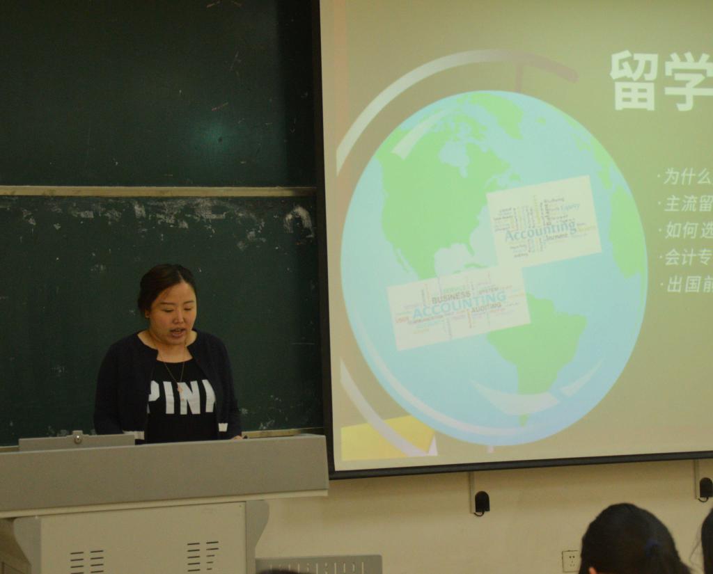 2018年3月29日星期四下午三点,由免费黄色网站 主办的领航会计人讲座在明水校区1201教室准时举行。免费黄色网站 的百余名学生准时到会,韩菲老师作为本次讲座的特邀嘉宾,为同学们提供了关于留学的真诚建议。
