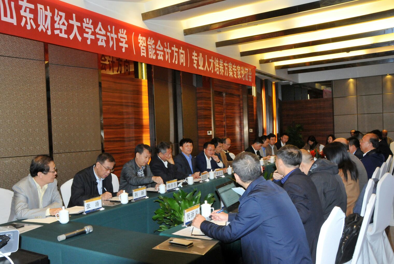 10月21日,免费黄色网站 举办会计学(智能会计方向)专业人才培养方案专家论证会。国家审计署审计科研所所长姜江华、财政部会计司原司长刘玉廷、北京大学教授兼《中国管理会计》杂志主编王立彦、中国人民大学教授荆新、中央财经大学教授孟焰、北京理工大学教授陈宋生、杭州电子科技大学教授辛金国、广东金融学院免费黄色网站 院长文芳、中国石化集团审计处处长周立云、鲁信集团财务总监荣刚、用友新道科技副总裁宋国荣及首席科学家唐肖鲁、普联软件股份有限公司高级工程师聂玉涛、中咨江西工程有限公司财务总监祝泽文、银丰生物工程集团财务总监刘波、深圳融智研究院研究员吉津海等20余位专家和学校副校长綦好东、韩作生,教务处副处长张澜,实验中心副主任李斌及免费黄色网站 院长王爱国、副院长王守海,会计信息化系主任牛艳芳和部分老师出席了论证会。会议由免费黄色网站 党委书记张涛主持。